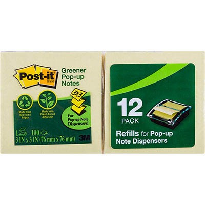 3M R330-RP POST-IT RECYCLED POP-UP NOTES 100 SHEETS 76X76MM YELLOW PACK 12