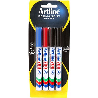 ARTLINE 700 PERMANENT MARKER BULLET 0.7MM ASSORTED PACK 4