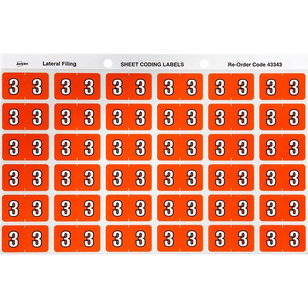 AVERY 43343 LATERAL FILE LABEL SIDE TAB YEAR CODE 3 25 X 38MM DARK ORANGE PACK 180