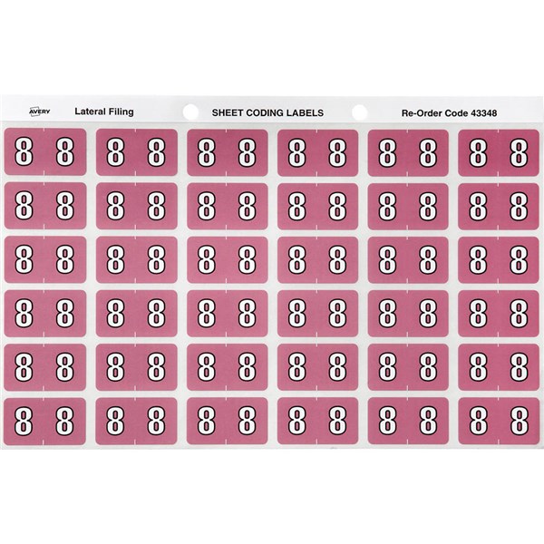 AVERY 43348 LATERAL FILE LABEL SIDE TAB YEAR CODE 8 25 X 38MM MAUVE PACK 180