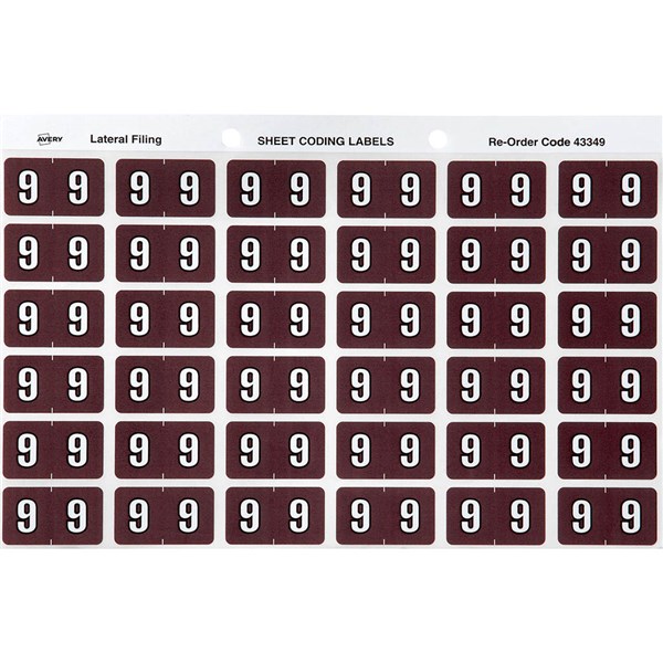 AVERY 43349 LATERAL FILE LABEL SIDE TAB YEAR CODE 9 25 X 38MM BROWN PACK 180