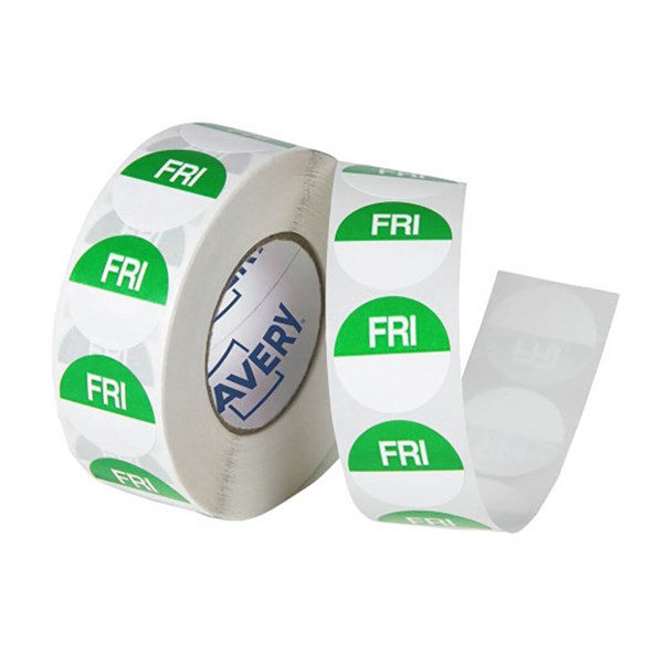AVERY 937408 ROUND REMOVABLE DAY LABEL FRIDAY 24MM GREEN BOX 1000