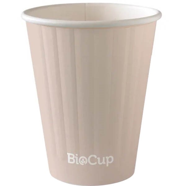 Aqueous Double Wall BioCups are manufactured using an unique water based barrier coating - They are certified industrially compostable to European standards (EN13432) and will soon be certified to Australian standards (AS4736)