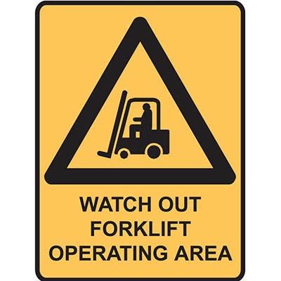 BRADY WARNING SIGN WATCH OUT FORKLIFT OPERATING AREA 450 X 300MM POLYPROPYLENE