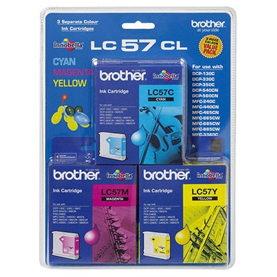 BROTHER LC57CL3PK INK CARTRIDGE VALUE PACK CYAN/MAGENTA/YELLOW
