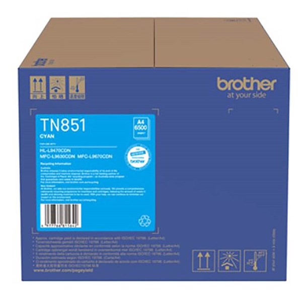 The TN851C cyan toner gives you up to 6,500 pages of printing - High quality genuine Brother toner
