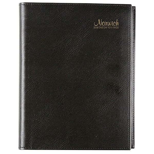 The Cumberland Norwich diary is for those who prefer a spiral bound diary - Featuring a stylish, flexible leathergrain cover, finished with the famous gold foil 'Norwich' logo and fine ivory paper