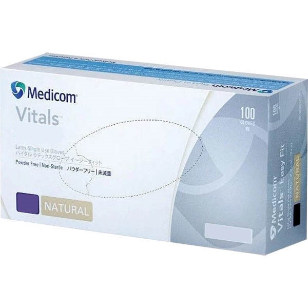 MEDICOM VITALS LATEX POWDER FREE DISPOSABLE GLOVES SMALL NATURAL PACK 100