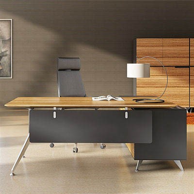 NOVARA EXECUTIVE DESK LEFT HAND RETURN 1950 X 1850 X 750MM ZEBRANO TIMBER VENEER