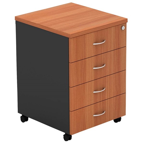 OM MOBILE PEDESTAL 4-DRAWER LOCKABLE 468 X 510 X 685MM CHERRY/CHARCOAL