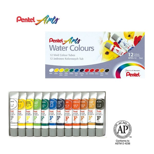 PENTEL ARTS WATER COLOURS ASSORTED PACK 12