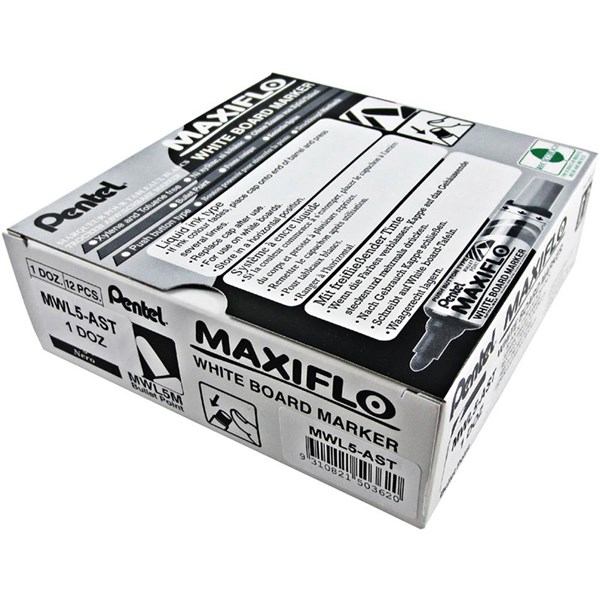 PENTEL MWL5 MAXIFLO WHITEBOARD MARKER BULLET 2.1MM ASSORTED BOX 12