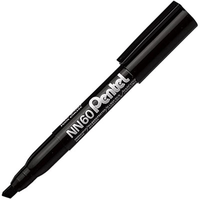 PENTEL NN60 GREEN LABEL PERMANENT MARKER CHISEL 4.5MM BLACK BOX 12