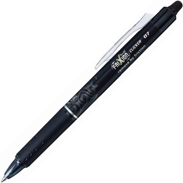 The erasable Frixion Clicker is a unique retractable gel pen that contains thermo sensitive gel ink. The heat generated by friction when rubbing the paper with the special tip turns the ink invisible - With no damage to the paper, you can erase and instantly re-write over your mistakes