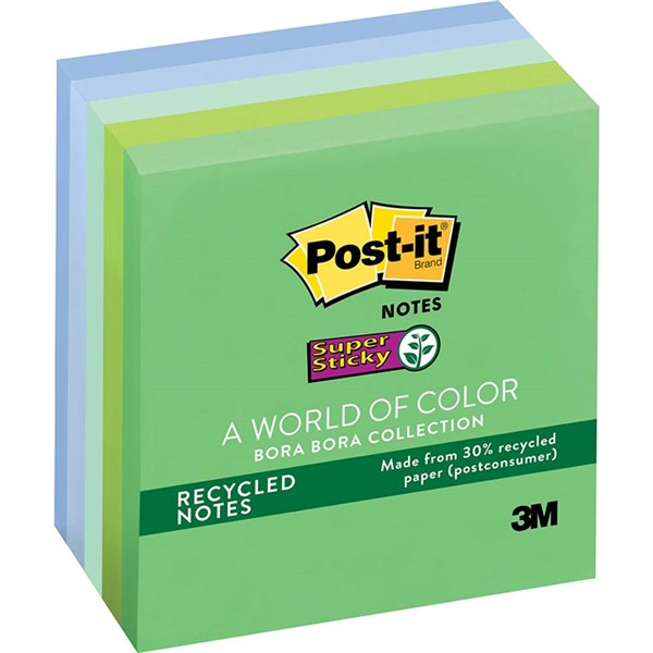 Post-it Recycled Super Sticky Notes support a better future by using recycled paper
