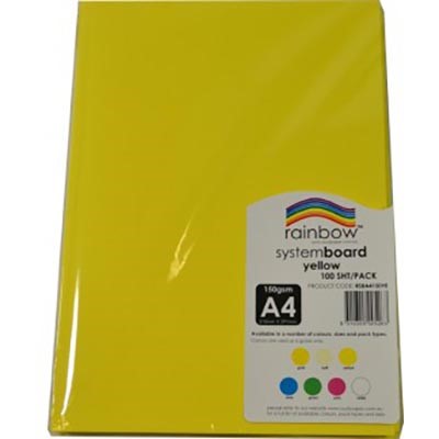 RAINBOW SYSTEM BOARD 150GSM A4 YELLOW PACK 100
