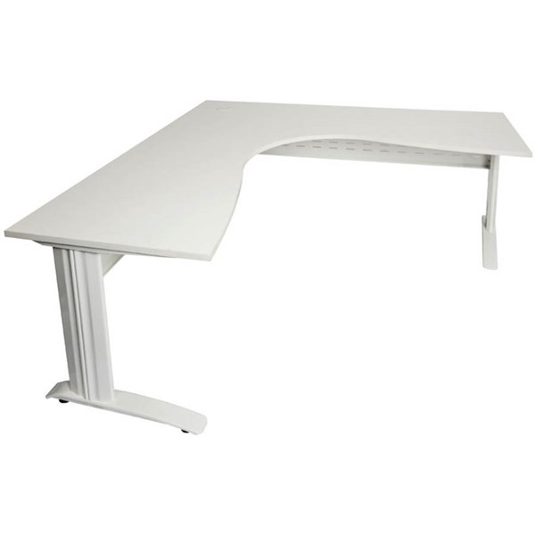 The Rapid Span Corner Desk features a 25mm melamine top with cable entries, metal legs and perforated modesty panel - The desk top is universal, this means when you assemble the desk, you can have the short side on the right or on the left, whatever suits