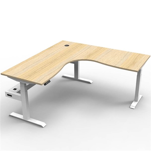 RAPIDLINE BOOST PLUS HEIGHT ADJUSTABLE CORNER WORKSTATION WITH CABLE TRAY 1500 X 1500 X 750MM NATURAL OAK TOP / WHITE FRAME