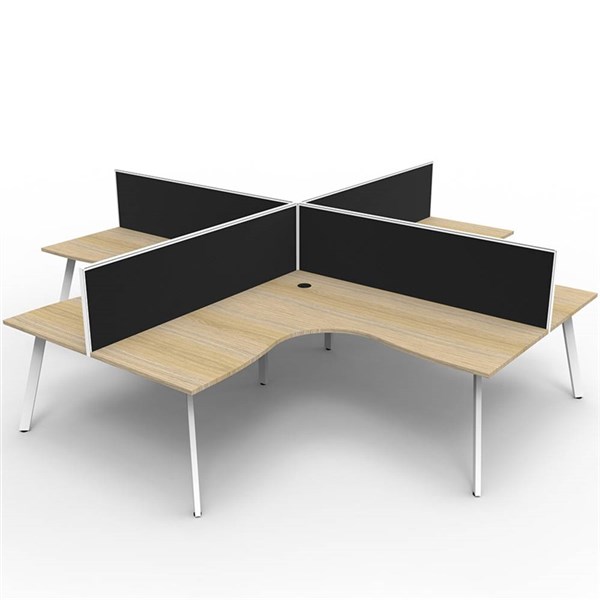 RAPIDLINE ETERNITY CORNER WORKSTATION 4 PERSON 1500 X 1500MM WITH SCREEN NATURAL OAK / WHITE SATIN