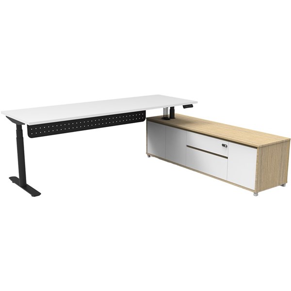 - The integrated side cabinet provides ample storage with drawers and cupboards, enhancing workspace organisation and keeping your essentials within easy reach