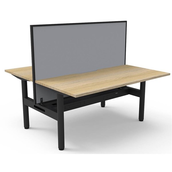 RAPIDLINE HALO STATIC BACK TO BACK WORKSTATION WITH SCREEN AND CABLE TRAY 1500 X 750MM NATURAL OAK/BLACK