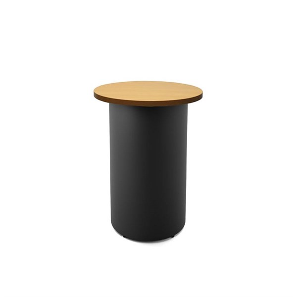 RAPIDLINE ROUND HIGH BAR TABLE DRUM BASE 600MM X 1050MM BEECH TOP AND BLACK P/C FRAME