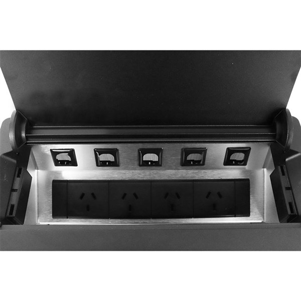 RAPIDLINE TABLE SURFACE MOUNTED SERVICE BOX 4-GPO BLACK POWDERCOAT