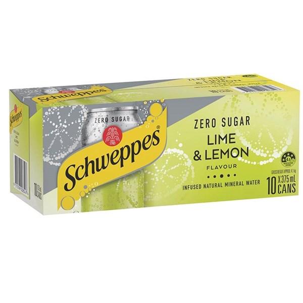 SCHWEPPES INFUSED NATURAL MINERAL WATER CAN 375ML LIME AND LEMON PACK 10