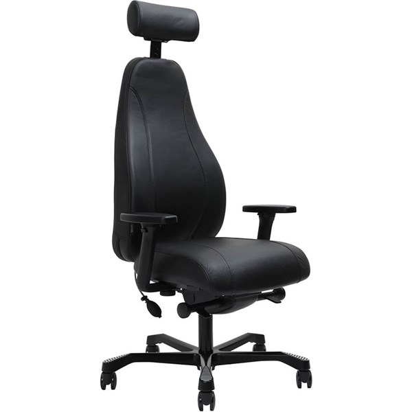 SERATI HIGH BACK CHAIR PRO-CONTROL SYNCHRO 3-D HEADREST ADJUSTABLE ARMREST BLACK ALUMINIUM BASE FOOTPLATES NEO BLACK LEATHER