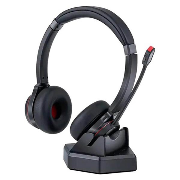 The Shintaro Maxifi Bluetooth headset offers seamless communication for contact centers, compatible with desk phones, mobiles, and laptops - With Bluetooth pairing ease, it features a mute function via its dock, perfect for calls on mobile and select PC software like Microsoft Teams