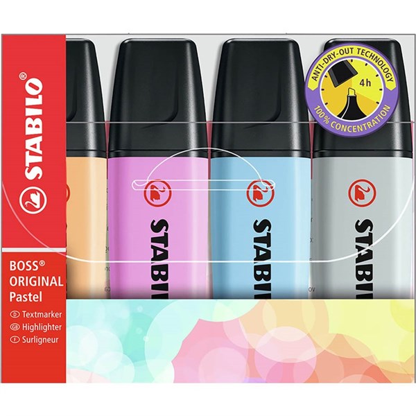 STABILO 70/4-4 BOSS HIGHLIGHTER PASTEL ASSORTED PACK 4