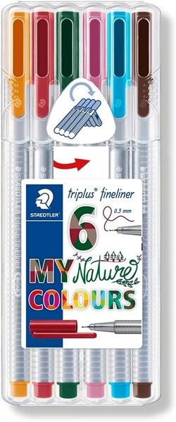 STAEDTLER TRIPLUS FINELINER - WALLET OF 6 ASSORTED NATURE COLOURS