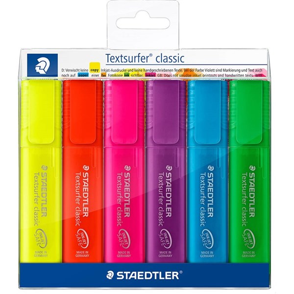Staedtler textsurfer classic performs perfectly on inkjet print-outs without smudging the ink and with the highlights still remaining visible after photocopying - Highlighter with large ink reservoir for extra-long highlighting performance