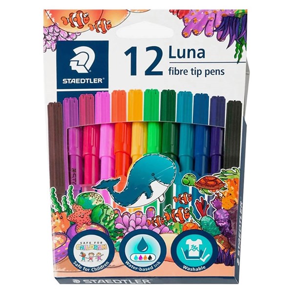 STAEDTLER LUNA PEN FIBRE TIP 1.0MM ASSORTED COLOURS PACK 12