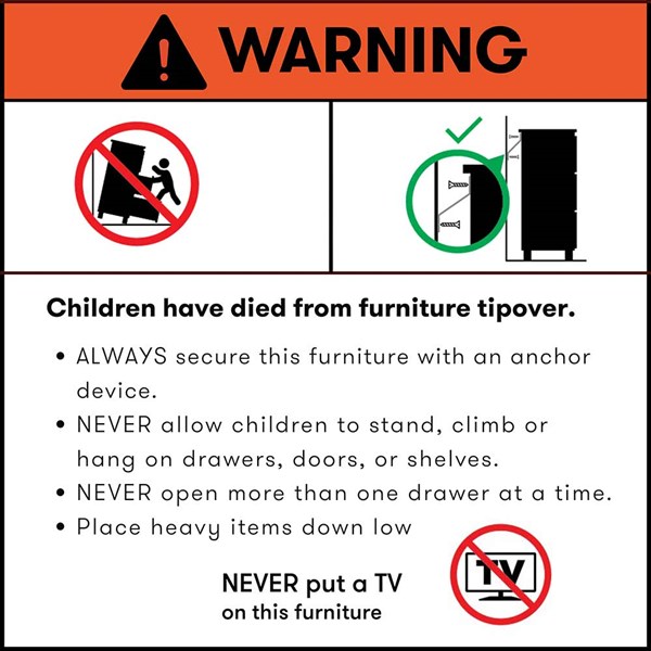 - Disclaimer : Freestanding furniture may tip over if not properly secured. Always follow the manufacturer's safety instructions and ensure items are anchored or stabilized as recommended