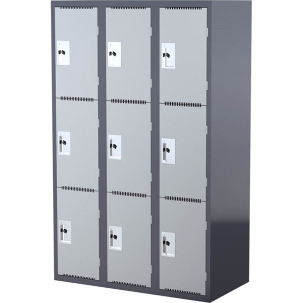 STEELCO SCHOOL HEAVY DUTY LOCKER 3 DOOR BANK OF 3 380MM DARK/LIGHT GREY