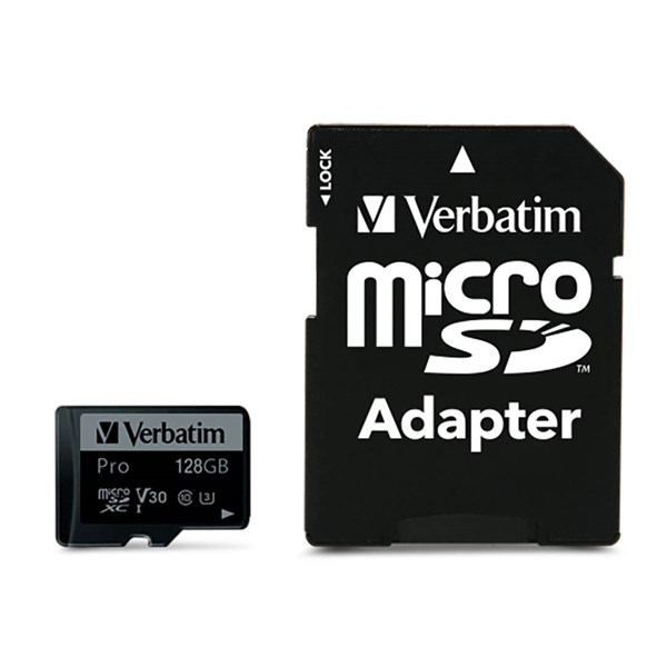 The Verbatim Pro Micro SD Class 10 128GB Black (47044A) is a high-performance microSD memory card designed for storing photos, videos, apps, and data on devices like smartphones, tablets, action cameras, drones, and more - With Class 10 speed and UHS-I support, it delivers reliable performance for Full HD and 4K video recording and burst-mode photography