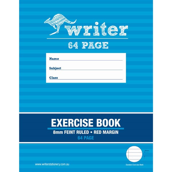 Writer Exercise books have it all, heavy duty covers, high quality white 60gsm paper - Crisp blue lines and red margins