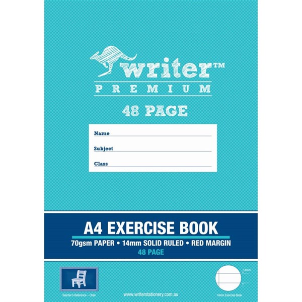 WRITER PREMIUM EXERCISE BOOK RULED 14MM 70GSM 48 PAGE A4 CHAIR