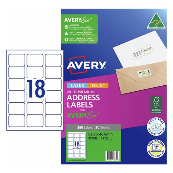 - Customise your labels with our free and easy-to-use template software; Avery Design and Print - available at averyproducts.com.au/print