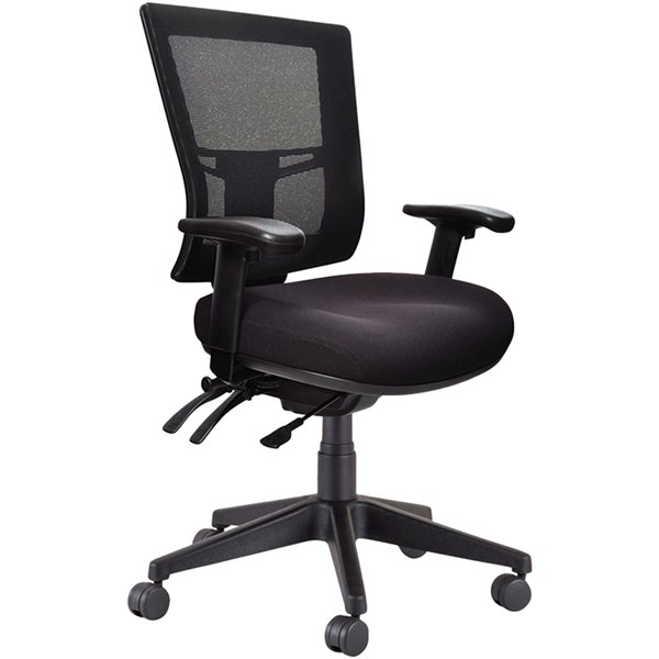 BURO METRO II 24/7 TASK CHAIR MEDIUM MESH BACK 3-LEVER NYLON BASE WITH ARMS BLACK