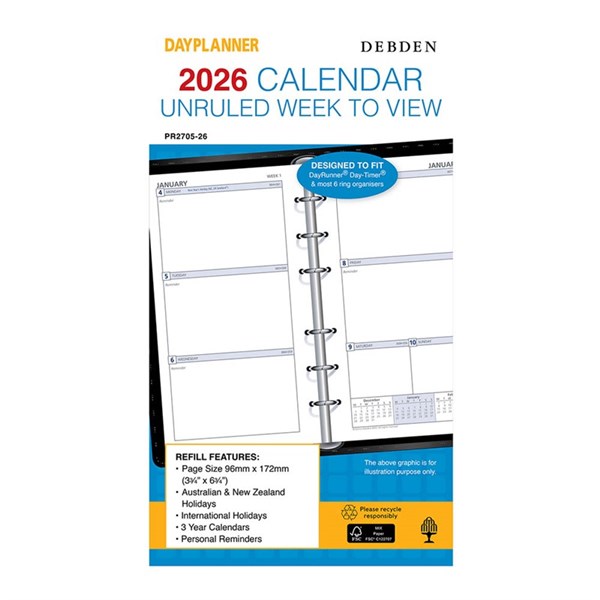 The Collins Planner Refill is designed to fit neatly into 6 hole Personal Planners - It features a week to view format that helps you plan for the next 7 days