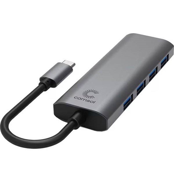 COMSOL HUB USB-C TO 4 PORT USB-A 3.0 GREY