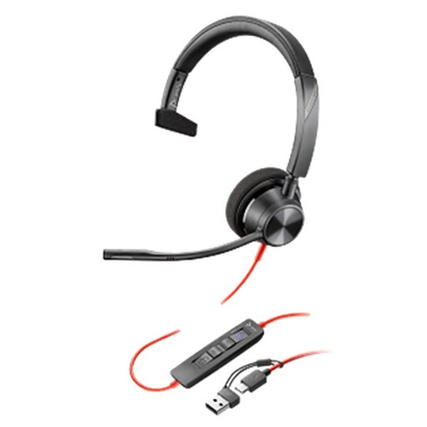 HP POLY BLACKWIRE 3310 MONAURAL MS TEAMS CERTIFIED USB-C HEADSET + USB-C/A ADAPTER BLACK