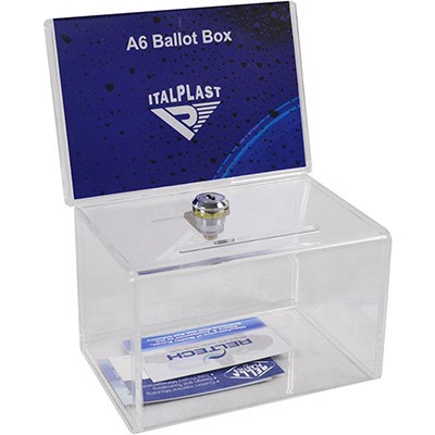 Italplast lockable ballot box - Acrylic A6 Ballot Box complete with key lock and 2 metal keys