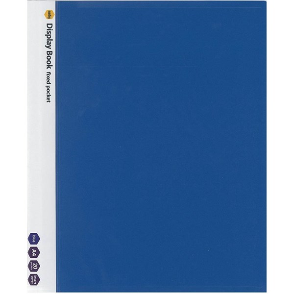 MARBIG DISPLAY BOOK NON-REFILABLE SPINE INSERT 20 POCKET A4 BLUE