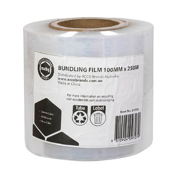 The Marbig bundling film is ideal for stabilising packages on onsite pallets - Light weight and easy to carry with you through the warehouse