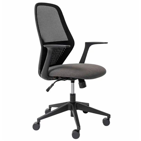 - It features adjustable seat height, synchronised adjustable seat and back rest angle, and fixed armrests