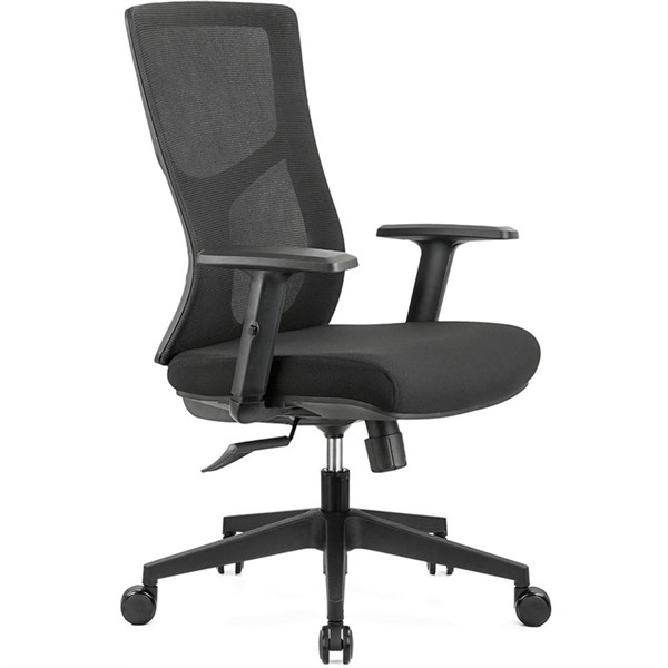 Our Tilly task chair has been designed with heightadjustable arms and a synchron mechanism with 4 position locking and tension control, to ensure customised support - The moulded foam seat and mesh back provide superior comfort and breathability, while the black fabric upholstery adds a sleek touch to any office space