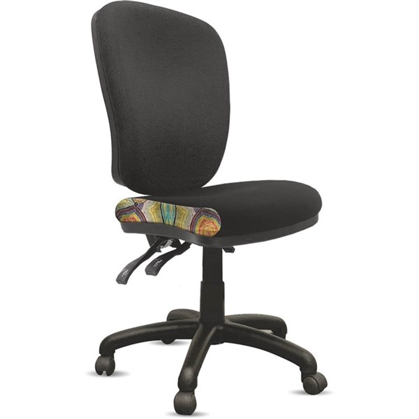 • A unique commercial fabrics designed by Nelly Patterson (Indigenous Artist) combined with K2 black fabric to upholster the chair